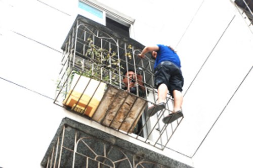 据现场民警介绍,女子深陷传销魔窟后,为逃离虎口,不得已冒险从高楼一窗台爬到3楼防盗窗上,在无路可走的情况下向过往居民求助报警。接警后,民警迅速出动,并现场控制了3名传销人员,其中1人来自河北,2人来自山东,都住在富民街27号一个楼层上。