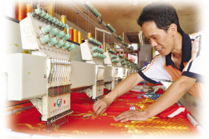 诸咪兴表示,渔溪村有人口1500多,全村从事戏具制作的就占该村总人口的十分之一。渔溪人生产的戏剧服装、鞋帽、盔头等远销全国各地,甚至还有“漂”向国外的。整个村的戏具年销售额在700万元以上,成了远近闻名的戏具生产专业村。