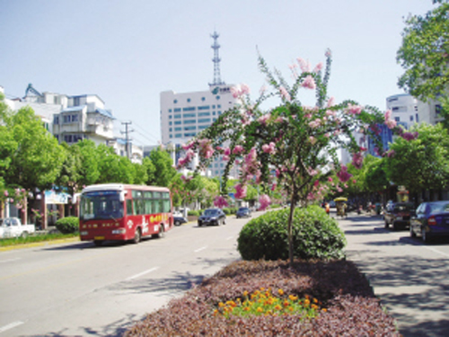 炎热的夏天,大街上的紫薇花越开越欢,饶有趣味。