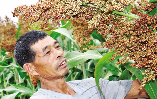 北国的红高粱在南方的土地上一样长得红红火火。7月27日,嵊州市甘霖镇一位农民正在采收红高粱。 (来源:绍兴网)