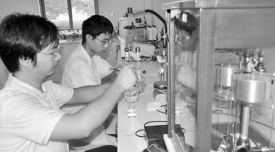 嵊州市黄泽镇工业区的浙江神州科技化工有限公司通过与浙江大学等高校的科研合作,自主研发出新型地铁、隧道遇水膨胀橡胶制品和机动车制动液,成功实现了企业的转型升级,相关项目还列入了浙江省重大科技项目,用核心技术掌控了市场的话语权。 图为8月3日,科研人员正在实验室进行试验。(来源:绍兴网)