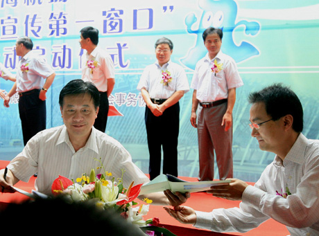“世博宣传第一窗口”启动签约仪式正在举行。