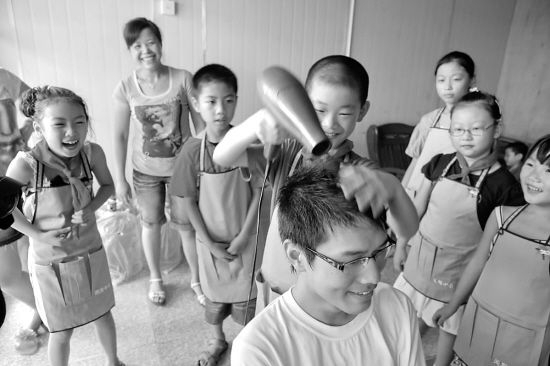 “没想到这么累。”报名参加洗车工体验的四年级学生潘泽康说,自己举起高压水枪才知道,洗车原来并不是件好玩的事。“以前我每天都看到家门口这家洗车店的叔叔在喷水枪,觉得很有趣,没想到水枪这么重,拿不好连自己都要被喷翻。”