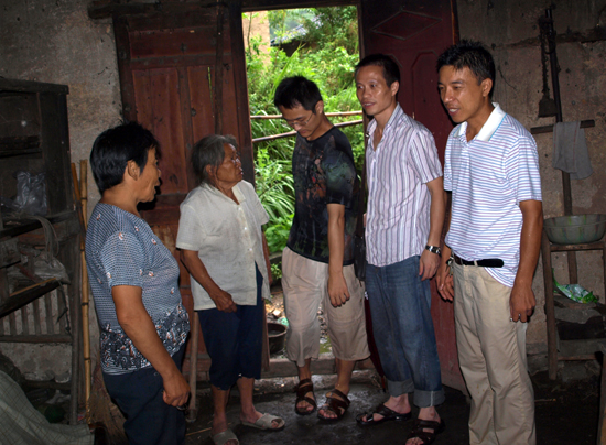 图为下王镇、村干部深入危房户进行劝说并做好安全转移工作