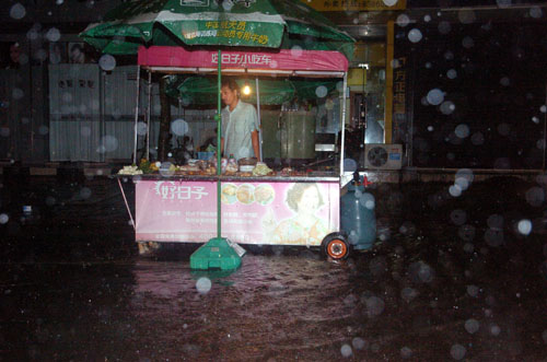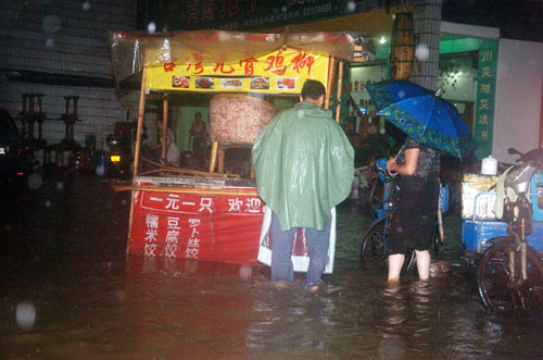 摊前10多厘米水,哪有顾客,只有收摊