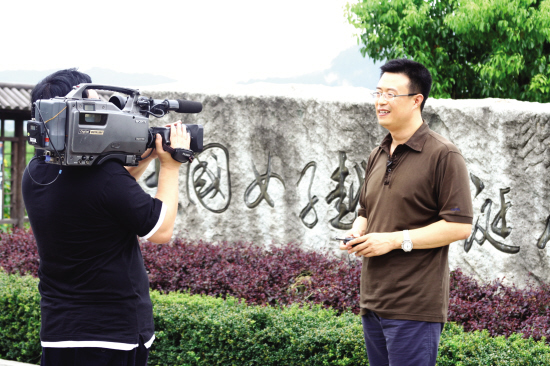 白燕升第4次来嵊州。嵊州的山水风光、人文历史都给他留下了深刻的印象。然而,他每次来去匆匆,对于滋养越剧的这块土地,仅仅是纸面上的了解。这次,他是用心来触摸越剧的灵魂。 今年,白燕升出版了他的散文集《冷门里,有戏》,身处梨园世界的他,正像他的书名一样,典雅从容,又不失真善分寸。对世事,他“净”;对喧嚣,他“静”,对戏曲,他“浸”,而对于水样的越剧,他则是深深“沉浸”。 “越剧是影响全国的第二大剧种,追根溯源,我早就想来嵊州好好地走一番。”白燕升说,一个剧种的诞生,离不开生它养它的土地,嵊州是一块什么样的土地?是什么样的山水,让越剧如此的柔美婉转,空灵典雅?这就是他们此番来嵊州的目的和意义。 白燕升被著名作家莫言誉为“上天为我们准备好的戏曲主持人”,看戏、说戏甚至唱戏都是白燕升与观众沟通的一座桥梁。白燕升说,走进嵊州,走进越剧,对他评价越剧,点评越剧,具有更高的话语权。 “嵊州的领导那么关心越剧,也挺让我感动,作为戏曲节目的主持人,我代表戏曲界向领导表示感谢。”白燕升说,以前只是听说嵊州人人会唱越剧,这次过来了,真切地感受了,也知道嵊州的民营剧团有120个之多,嵊州在市委市政府的扶持下,不仅把越剧做成了文化产业,并且以此为契机,还衍生了戏剧服装产业,真了不起。 短短一天半的时间,白燕升的感慨太多,赞赏太多。