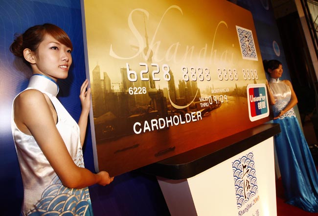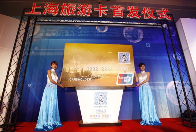 新华网上海频道裴鑫8月10报道:8月10日,为更好地服务2010年世博会,优化上海支付环境,促进消费,由上海市旅游局和中国银联联合推出的银联标准上海旅游卡在沪首发。该卡主要面向前来上海旅游的境内外游客以及上海本地居民发行,持卡人不仅可以在境内外银联卡受理网络刷卡消费和取款,还将在上海之旅中,享受涵盖“食、住、行、游、购、娱”的海派特色特惠专享服务、安全支付承诺及放心旅游保障。 新华社记者 裴鑫摄