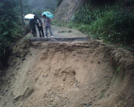8月9日至10 日,受今年第八号台风“莫拉克”影响,长乐境内普降大到暴雨。10日凌晨3点强降雨造成长乐境内小昆公路发生山体滑坡,造成小昆公路一处路段20米路基被冲毁,路面塌陷。灾害发生后,长乐镇立即启动抢险应急预案,镇党委政府和嵊州市乡村公路管理所相关领导在第一时间赶到小昆指导抢险工作。