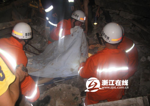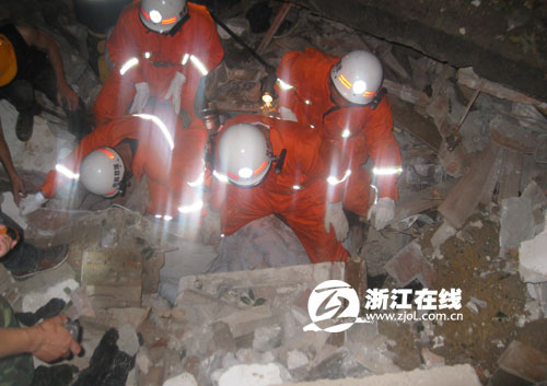 浙江在线08月11日讯 (通讯员 徐行号 胡承绍)受强台风“莫拉克”的影响,连日来泰顺县境内普降暴雨,由于长时间强降雨, 8月10晚22时25分,位于泰顺县彭溪镇彭溪村卫生院对面的山体,突然发生滑坡,其中7栋4层居民房受到山体倒塌的强烈冲击,瞬间倒塌,在部分人员已转移的情况下,有6人被废墟掩埋,生死不明,事故发生后,在公安、消防的紧急营救下,成功救出6名被困人员,其中2人已经遇难。