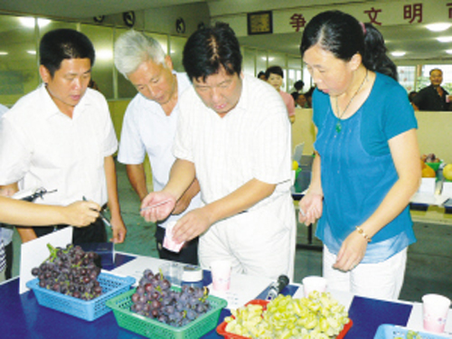 “啧,啧,精品就是不一样,今后增收就得靠精品水果。”昨日上午,市龙会社区活动中心内,来自全市各地百余位“泥腿子”果农,携各自精品水果参加全市第三届“剡溪杯”精品水果擂台赛。 这场擂台赛主办方并非政府部门,而是来自民间组织——市剡溪果业协会、剡溪果业合作社。参加擂台赛的“主角”是:桃、李、梨、葡萄等四大类精品水果,参赛样品达50多个。本次擂台赛代表了我市民间的最高规格、最高档次。 上午8时许,擂台赛正式开锣。由果木大师、果木大户代表等组成的专家评审组,对参赛的精品水果逐一进行测评,以糖度作为主要评比指标。一边,专家们在组织认真评比,另一边,附近围满了从各地赶来“取经”的果农。 市剡溪果业协会会长张月樟告诉记者,从2007年起,剡溪果业协会和果木专业合作社已连续举办了三届精品水果擂台赛,与前两届擂台赛相比,本届比赛精品水果种类从原先桃、梨的基础上增加了葡萄和李,品种从原先早熟扩大到中晚熟,旨在拉长精品水果产业链,引领更多果农科学种植、管理发展精品水果生产,从而实现果业增效、果农增收。 副市长马永信,市政协副主席袁辉尧饶有兴趣地来到评比现场观看,并为获得桃、李、梨、葡萄组金奖者颁奖。