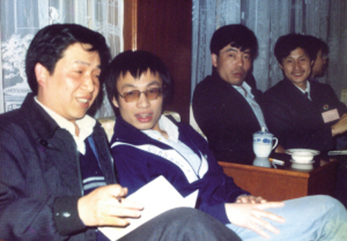 1990年,嵊州被命名为围棋之乡时,钱宇平(左二)与围棋爱好者在一起。(汪爱源 摄)