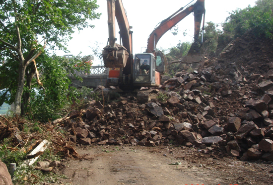 因受“莫拉克”台风影响,嵊州境内近几天连续强降雨,今日上午两小时内降水量高达67毫米左右。由于泥土大量吸水,发生边坡失稳,导致今天上午岩体沿该裂隙面下滑。
