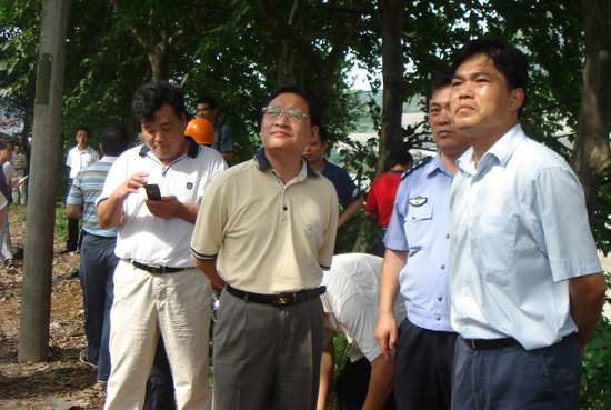 郭敏书记和盛秋平市长在现场察看抢险情况