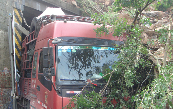 塌方时,这辆货车有一半还在清风桥桥洞,所幸没有被石块压住