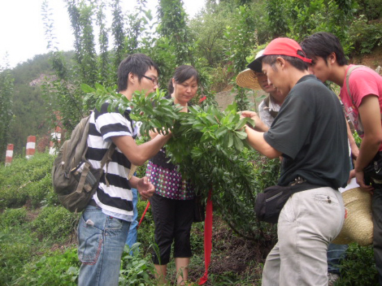 为查清危害桃形李的病虫种类,探索最佳的防治办法,帮助果农实现桃形李生产增产增收,市森防检疫站实施《桃形李病虫种类调查及防治技术研究》项目,邀请了浙江林学院的师生一道进行专题调查。通过前阶段初步调查,基本查清对桃形李危害的病虫种类有120多种,其中常见的有10多种,目前正在排查汇总,可望在明年整理成册,届时将供广大果农在实际生产中参考。图为调查现场。