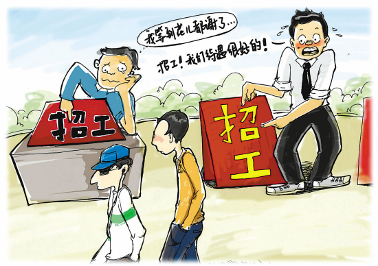 而在职业介绍中心大厅,一位来自四川的工人则说,如今不少企业工作时间长,但工资不高。“夏天太热了,工资又太低,还是先看看。”这位工人说,他的很多老乡都在观望,他们嫌工资太低、工作时间太长,不愿意去工作。