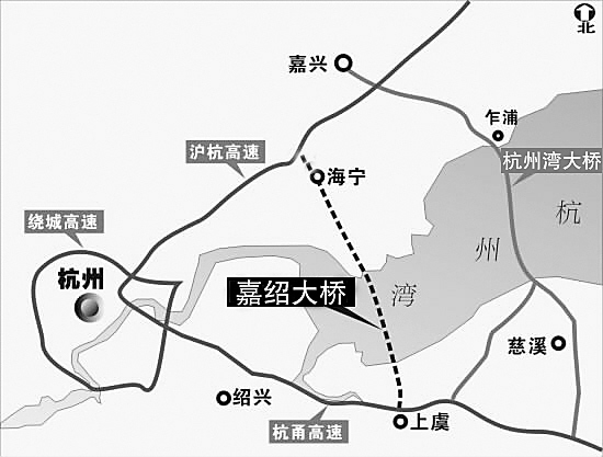 起自沪杭高速公路和乍嘉苏高速公路交叉处的嘉兴南湖枢纽,跨越钱塘江后入绍兴境内,全长69.2公里。2008年12月开工,到2012年,绍兴等杭州湾南翼城市抵沪的车程将缩短约40分钟。