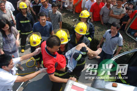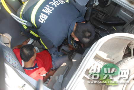 当天上午10时03分,嵊州市消防大队接到报警后,12名官兵立即乘两辆救援车火速赶往事发现场,迅速对路面实施警戒,并利用液压顶杆、液压剪切钳等特种救援器材,快速解救被困司机。至10时40分,被困司机终于被成功救出,并立即送上120救护车。