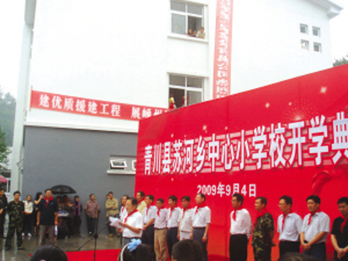 雾笼峻岭,秋雨连绵,在重建的一派繁忙景象中,大山深处矗立的苏河乡中心小学新教学楼,成为一道醒目风景。9月4日,这里鼓乐齐鸣,孩子们的笑脸与彩旗交相辉映,郭敏一行系上鲜艳的红领巾,与孩子们一起,共同迎接新学期的第一次升旗,倾听第一声清脆的开课铃声。作为我市对口援建的重点项目,苏河乡中心小学总建筑面积3169平方米,学生270人,共6班,初步设计概算1332.86万元。自今年2月10日进场施工以来,我市援建人员克服时间紧、人手少、任务重等困难,严抓质量,抢赶工期,该项目于8月16日通过竣工验收,8月30日交付使用。另一个重点项目苏河乡卫生院面积为420平方米,床位4张,初步设计概算164.07万元,目前也即将完工。