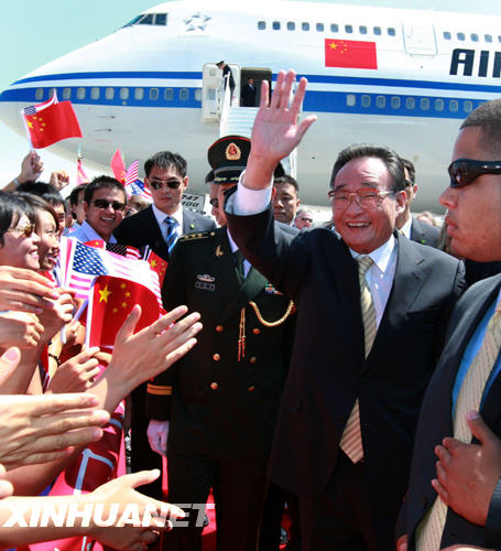 当地时间9月6日中午,应美国国会众议院议长佩洛西的邀请,中国全国人大常委会委员长吴邦国抵达菲尼克斯,开始对美国进行正式友好访问。新华社记者 庞兴雷 摄