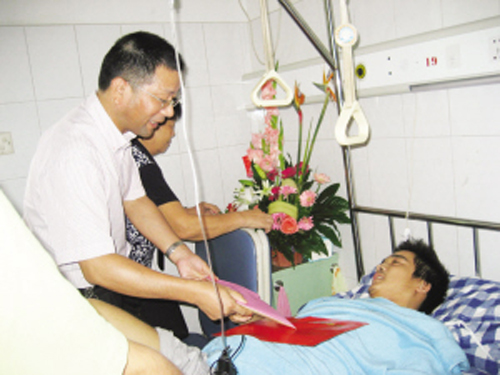 爱心如接力棒一样在延续着。躺在病床上、刚做过手术的李永飞尽管腿部还非常疼痛,但他却微笑着说:“有了大家的关心和爱护,我肯定会战胜困难,重新站起来!”
