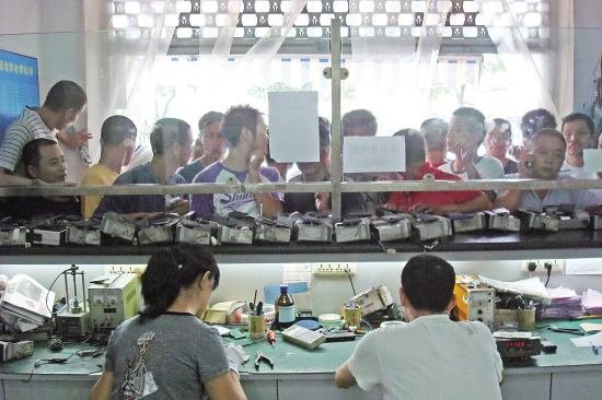 在计价器检定校准中心内,工作人员个个忙得大汗淋漓。“一下子坏了这么多,我忙得连上厕所的时间都没有。”一位工作人员说。