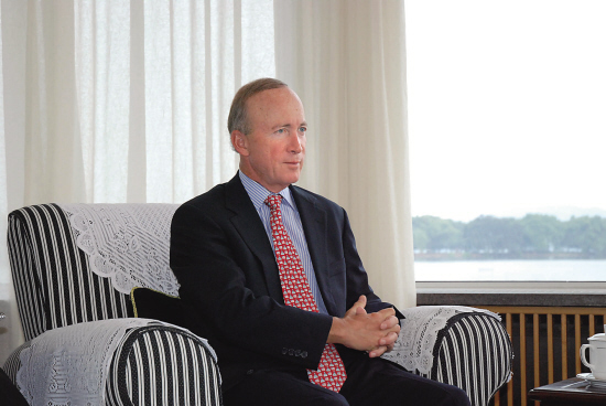 印州州长米奇·丹尼尔斯正在接受本报记者专访。 侯玮摄