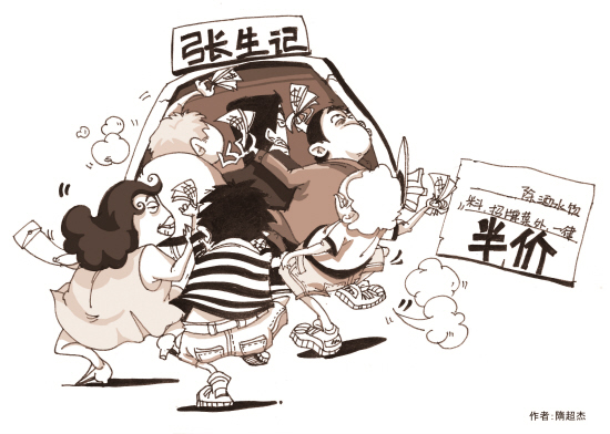 小胡平时下班六点多,去大众餐馆吃饭常常要排队守候到七点半才能叫上号子。“张生记七点半半价折扣估计会吸引更多的人,难说等到8点都没看见队伍的头。”