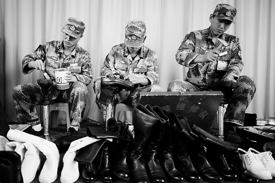 李先生介绍,他们生产的阅兵鞋,采用了内减震和外减震技术,“这种技术一般用在运动鞋上,现在被我们用到了皮鞋生产中。阅兵大典中,将士们需要长时间站立以及完成很多动作,这种设计能对脚起到更好的保护作用。”