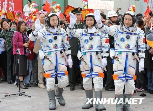 神舟七号航天员出征仪式。新华社记者李刚 摄