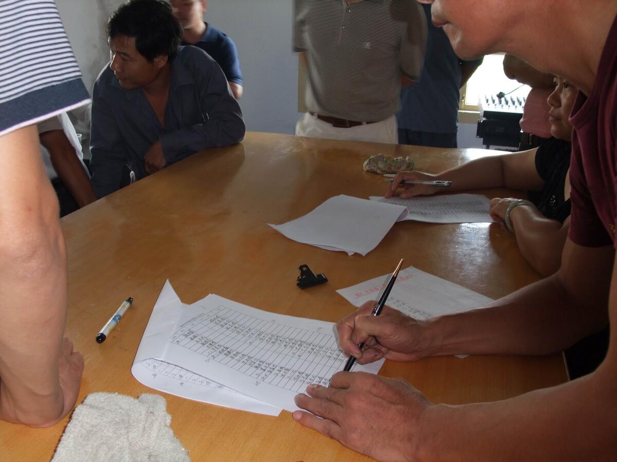 163张票,1-69为有效票。每抽一张,村里的会计和出纳在各自的表格里进行登记。