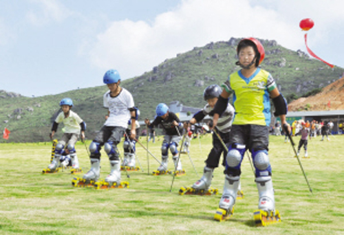 9月19日上午,下王镇覆卮山上,鼓乐喧天,礼炮齐鸣,华东最大规模的高山滑草场建成开放。下王镇两位老革命朱家有、童财友老人和下王镇校两位品学兼优的学生为项目的建成剪彩,体现了革命老区薪火相传、开拓创新、继往开来的精神风貌。 头顶蓝天白云,脚踏柔软青草,一阵清风吹过,绿浪奔涌,心旷神怡。19日上午,首批200多人“草原之鹰”开始体验欧洲时尚的滑草运动。一位正在参与体验的余姚游客表示,在覆卮山上滑草,头顶蓝天白云,远眺苍茫群山,拄滑竿一点,在力的作用下身体向前一倾,转眼间就似雄鹰在草原上飞翔…… 据开发商俞传青介绍,覆卮山旅游开发项目已投资近千万元,目前,一个集高山滑草、石浪攀岩、休闲度假于一体的旅游区块已经形成。