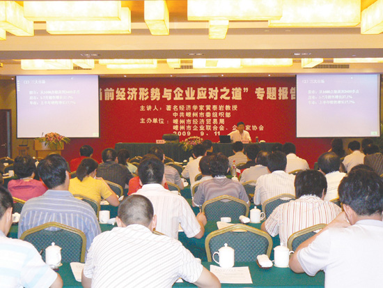 9月11日,在市委组织部、市经贸局、市企业联合会(企业家协会)联合举办的“当前经济形势及企业应对之道”专题报告会上,著名经济学家黄泰岩教授阐述的嵊州企业的应对之道,让企业家在危机中看到了商机,也鼓舞了企业家的斗志;