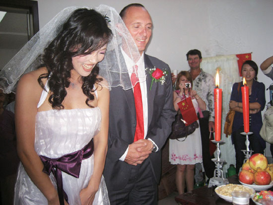 10月2日下午,我市长乐镇沃基村迎来了一对跨国恋人的结合,新娘是我国著名帆船运动员宋夏群,她与来自美国的工程师Cunningham先生用中国传统的方式举行婚礼。据了解,两人是在北京奥运会前认识的,当时宋夏群的帆船出现问题,Cunningham是一家澳大利亚船帆制作公司的工程师,经过一番“维修”,两人“修”成一段姻缘,后来发展成了恋人,最后喜结良缘,携手走上了结婚的礼堂。