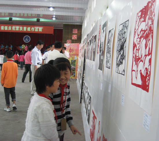 秋风送爽,丹桂飘香,9月30日,为欢庆新中国成立60周年,石璜镇开展剪纸作品展,通过150多幅生动逼真、异常神似剪纸作品的展示,再现了一大批伟大领袖、十大元帅等人物的风采,唤起了石璜镇村民与学生们的爱国热情。
