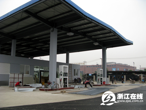 客运中心里的加油站仍在紧张建设
