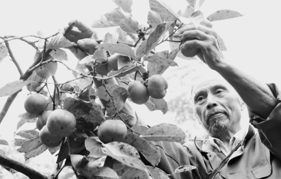 昨日,嵊州市长乐镇南山湖村寨岭头自然村甜柿基地甜柿开始采摘。据了解,该村几年前引种的甜柿去皮即可鲜食,自己采摘每公斤6元,是普通柿子销售价格的两倍。 (