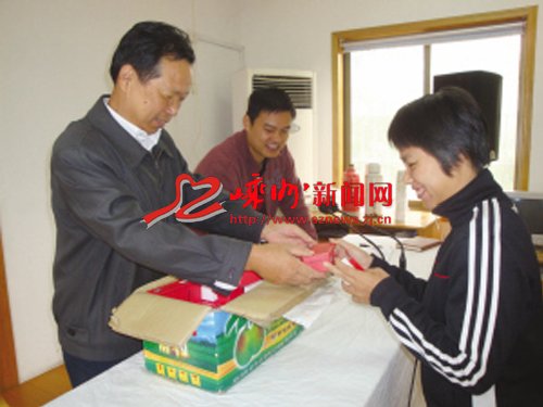 10月15日是 “国际盲人节”,昨日,市残联向31名低视力残疾人免费赠送助视器,为200名盲人免费进行白内障手术复明。图为工作人员正在向盲人发放助视器。