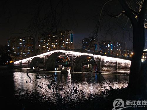 据了解,2007年,杭州开始面向全世界征集杭州运河(主城区段)两岸共21公里的夜景规划方案,2008年底基本完成土建、安装和调试,运河夜景亮灯效果初显。杭州运河亮灯工程不同于以前的平面亮灯概念,运河夜景照明设计方案从三维空间的角度设计,方案兼顾到水中、岸上、空中多个层次,以点串线,由线到面,从不同照明角度来构成一副中国水墨丹青式的运河夜景图。尤其是威尼斯灯柱、里程计、蓝绿光雾带的设计理念都属国内首创。