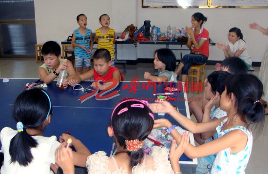 为配合“春泥计划”的开展,仙岩镇7名大学生村官主动担当起辅导员角色,在假期和双休日期间,利用仙岩村活动中心的设施,义务为小学生进行课外学习辅导,为农村孩子提供一个健康、快乐的校外活动场所,受到了小学生及其家长的欢迎。图为小学生们正在表演节目。