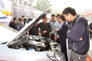 10月17日,2009年嵊州车展与装潢材料购物节在该市体育场举行,上海大众等10多家汽车销售商和20余家装潢材料销售商进场展出了近百车辆新车和多种装潢装饰类商品。图为车展现场。(