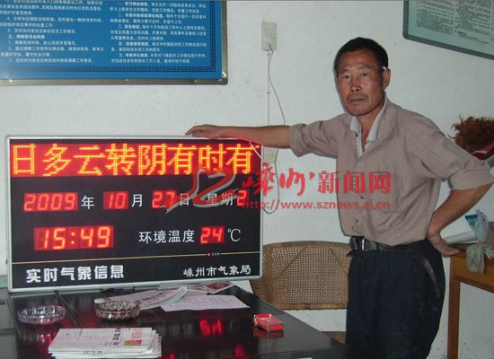 10月27日下午,对普安村的广大蔬菜种植专业户来说是一件大喜事,从今以后,他们再不用为“看天难”而发愁。因为,今天下午嵊州市气象局的领导专门为黄泽镇农民蔬菜专业产销合作社的会员们送来了“实时气象预报银屏”,该气象预报仪器直接连接着市气象局,不但能24小时不停地滚动播放天气情况,而且还能告知一周内的天气变化。这对长年从事“露天工厂”的蔬菜种植专业户们来说确实是一件大事。这个实时气象预报银屏,将安装在坐落在村口的村委会办公室路边墙上,方便全体村民及时收看。