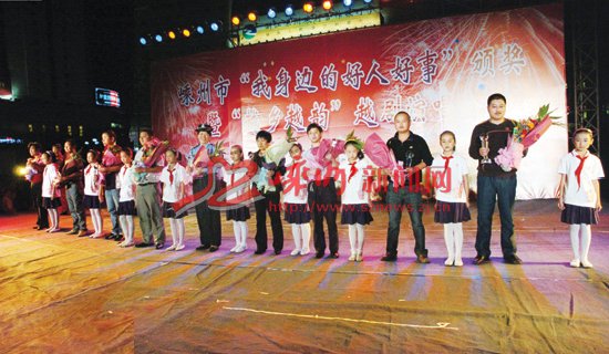 10月30日晚上,由市委宣传部和市文明办主办的“我身边的好人好事”颁奖暨“越乡越韵”越剧演唱会在市区文化广场举行。近几年来,在我市文明建设中,涌现了一大批体现时代精神、具有高尚情操、产生广泛影响的好人好事。经评选、公示、审定,史训学等10个(件)好人好事荣获“我身边的好人好事”称号。市委常委、宣传部长何国英为获奖者颁奖。