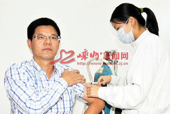 10月29日是我市甲流疫苗接种的第一天。作为六类首批重点接种人群之一,来自我市疾控中心的60多名一线工作人员打下了“定心针”。当天起,我市开始接种第一批甲流疫苗,以后随着疫苗供应量的增加,将逐步扩大接种范围。