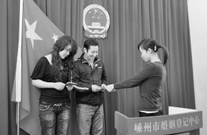 农历九月初九,是我国传统节日重阳节,又因“九九”与“久久”同音,新人们也想讨个彩头赶在这天去登记。这天,到嵊州市婚姻登记中心登记结婚的新人有50余对,是平时的3倍。(