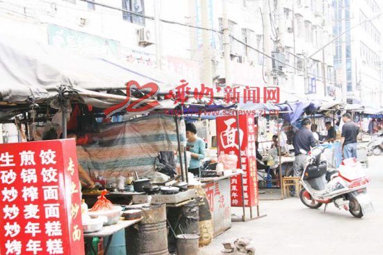 四海路街市两侧摊位简易棚棚,蓝色的顶棚因年长日久风吹雨打,加上油烟的腐蚀,显得支离破碎,还有满目的灰尘油污,与高楼林立的四海路很不协调,另外,各摊位的摆设也该改善一下了。