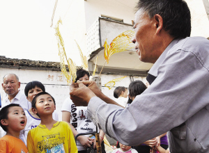 制作糖人是我国民间的一种手工艺,做糖人的材料以蔗糖和麦芽糖为主,制成后的糖人有人物、动物、花草等造型,按其制作工艺的不同可分为吹糖人、画糖人和塑糖人三种。图为嵊州街头民间艺人现场制作糖人招俫顾客。(来源:绍兴网—天天商报)