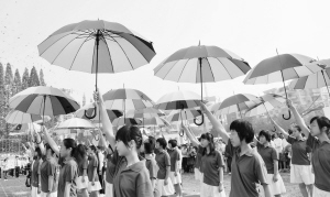 10月31日上午,嵊州中学第八届田径运动会入场仪式上,该校各个班级展示特色才艺表演,在运动会前进行了一场才艺比拼。(