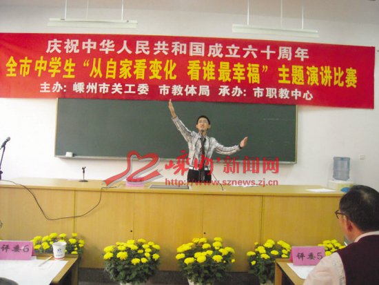 本次比赛以“从自家看变化 看谁最幸福”为主题,来自全市初高中的20名选手进行了演讲。经过激烈争夺,市职教中心获得高中组一等奖,城关中学和爱德初中部获得初中组一等奖。