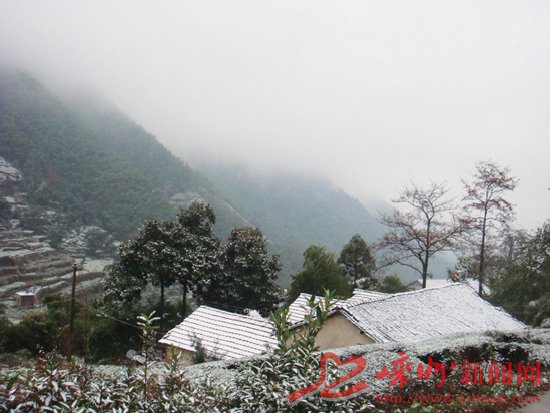受北方强冷空气影响,昨日凌晨,我市谷来镇、北漳镇、通源乡等地迎来了今年入冬以来的第一场雪(市区也曾下雪子),其中400米以上高海拔地区积雪较为明显,低海拔地区积雪较少或不明显。 记者在通源乡白雁坑村看到,薄薄的积雪已将房顶和茶园都染白了。据当地老人回忆,11月中旬就下雪比较罕见,今年这场雪应该说比往年提早了不少天。记者从市气象局了解到,一般来说,我市在12月份下雪比较正常,大多数是在次年1-2月份下雪,11月中旬下雪确实非常少见。 到目前为止,由于雪量较小,尚未对当地群众生产、生活造成大的影响。 另外,受冷空气影响,雨水短暂停顿之后,今日下午我市又将开始新一轮降水,阴雨天气将持续到周末。由于一直是阴雨天气,最高温度不超过10℃,人体会明显感觉到寒冷。从本周起,我市已真正进入冬天了,在连阴雨天气里,人们要更加注意添衣保暖,别怕难为情,棉袄、羽绒服都可以翻出来穿上身了。